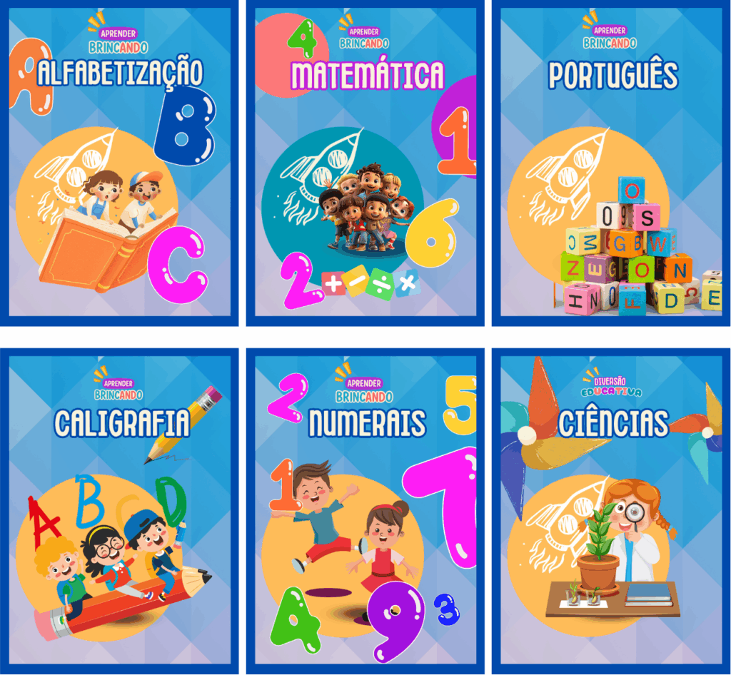 Com o KIT Aprender Brincando, você recebe um verdadeiro baú mágico com mais de 15 apostilas completas, prontas pra imprimir, brincar e transformar o aprendizado em diversão! 🎨📖