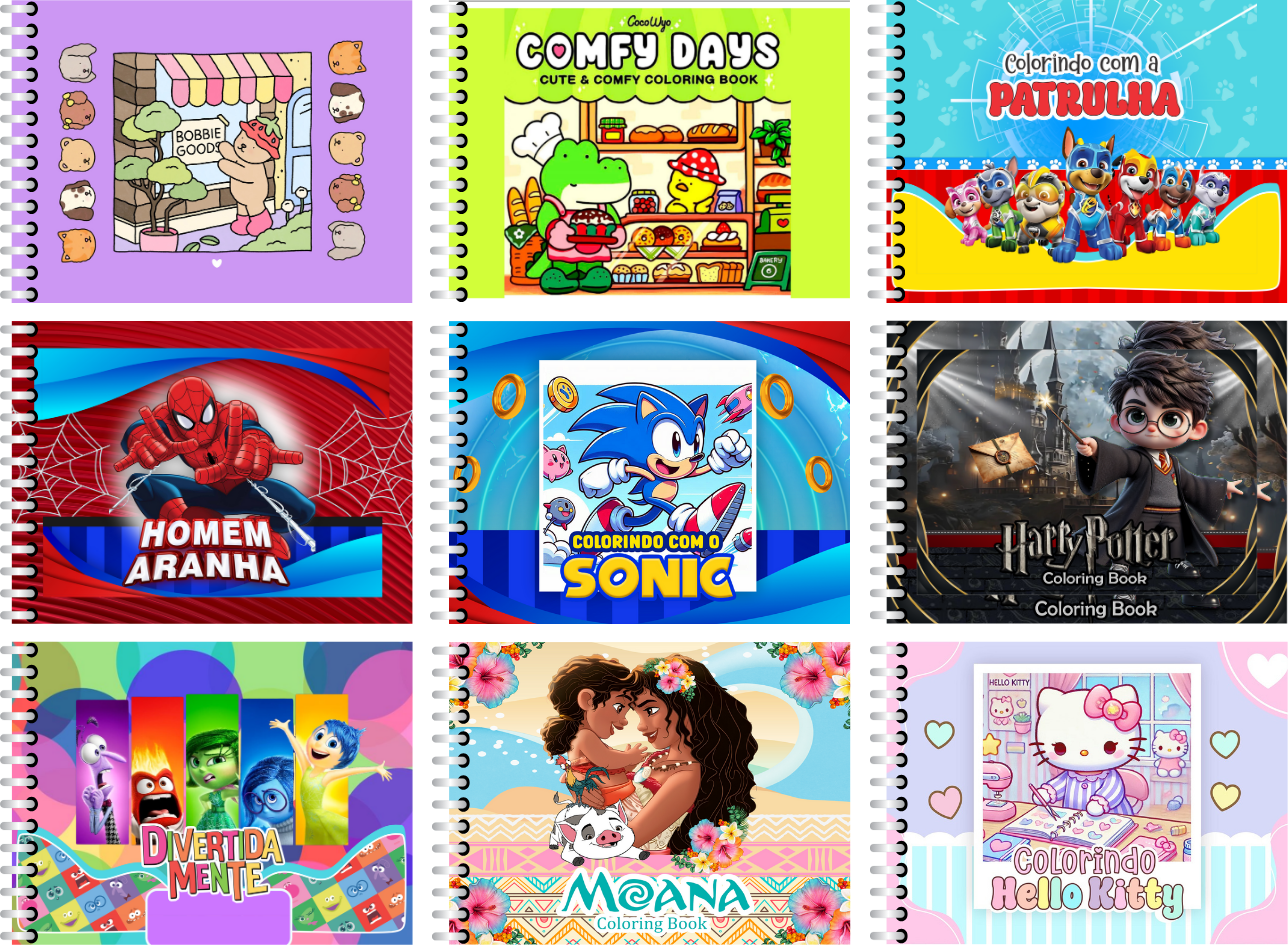 A coleção atende crianças de 3 a 12 anos, com desenhos de diferentes níveis de complexidade.